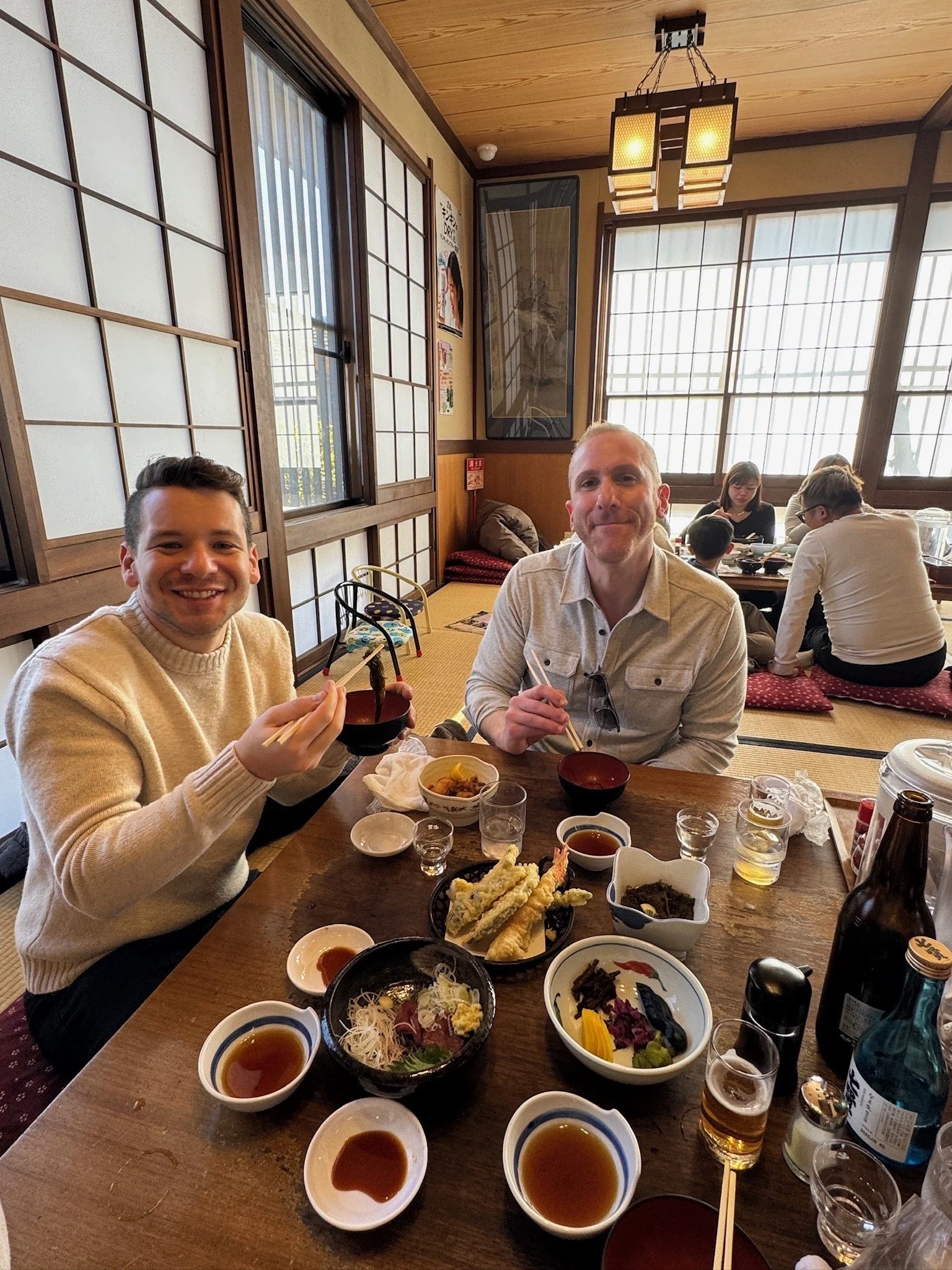 But one of the most unique experiences came on December 30th: a private helicopter tour to Mount Fuji. Unlike standard helicopters limited by wind conditions, this military-grade aircraft brought them remarkably close to the iconic peak. The day included exploring Lake Kawaguchi and hiking through Aokigahara Forest before returning to Tokyo—an experience that topped Mark and Pablo's list of favorites.