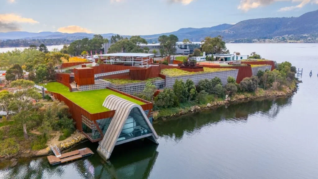 MONA—Museum of Old and New Art—is housed in a building that's three stories underground, much of it below the surface of the River Derwent. The collection belongs to David Walsh, a Hobart native whose private collection includes modern art, antiquities, and sculptures.